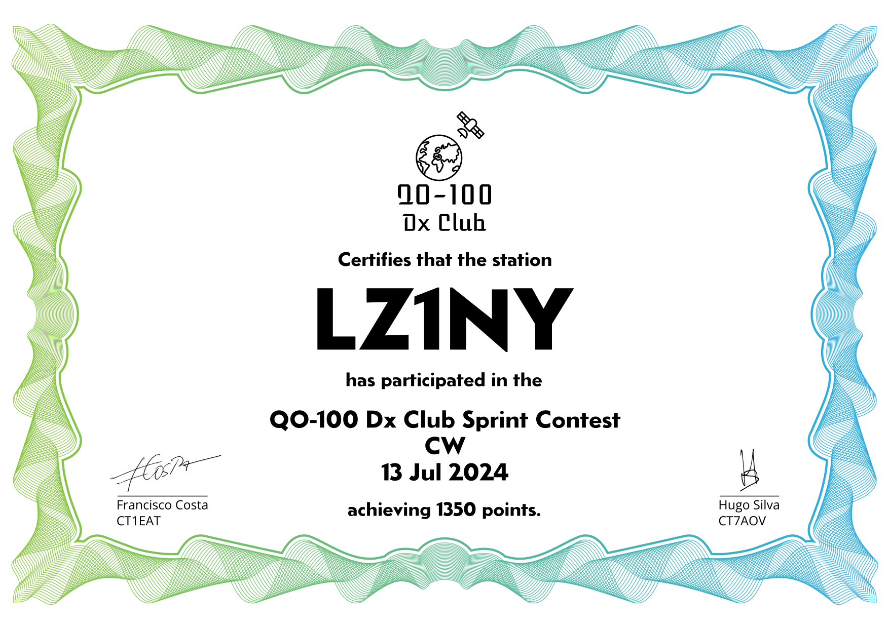are currently QO-100 Dx Club members, but might have not been at the time of the Sprint Contest.