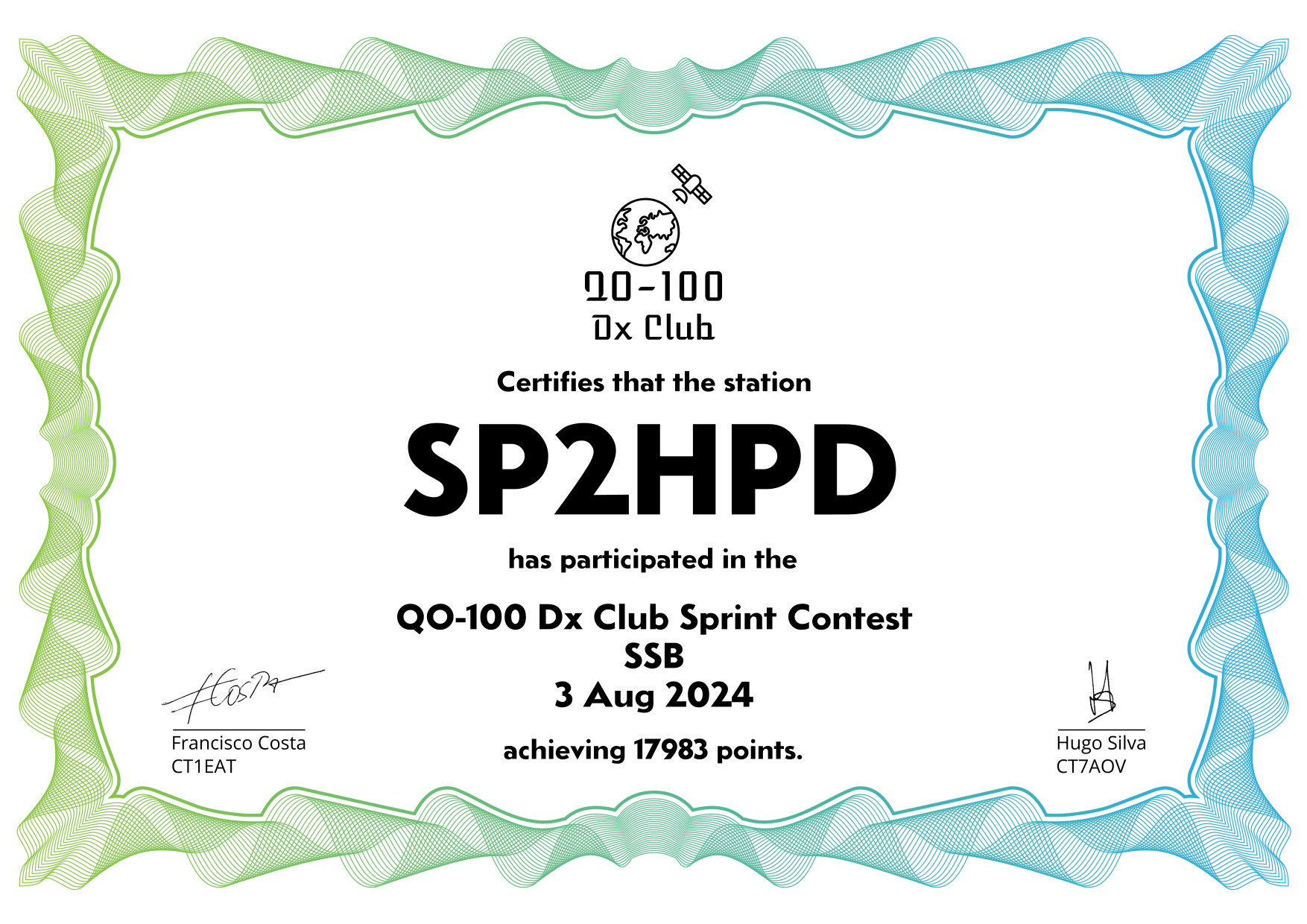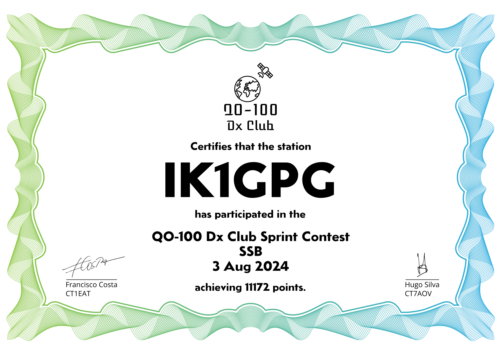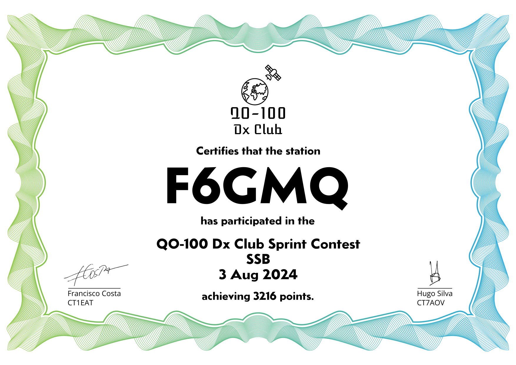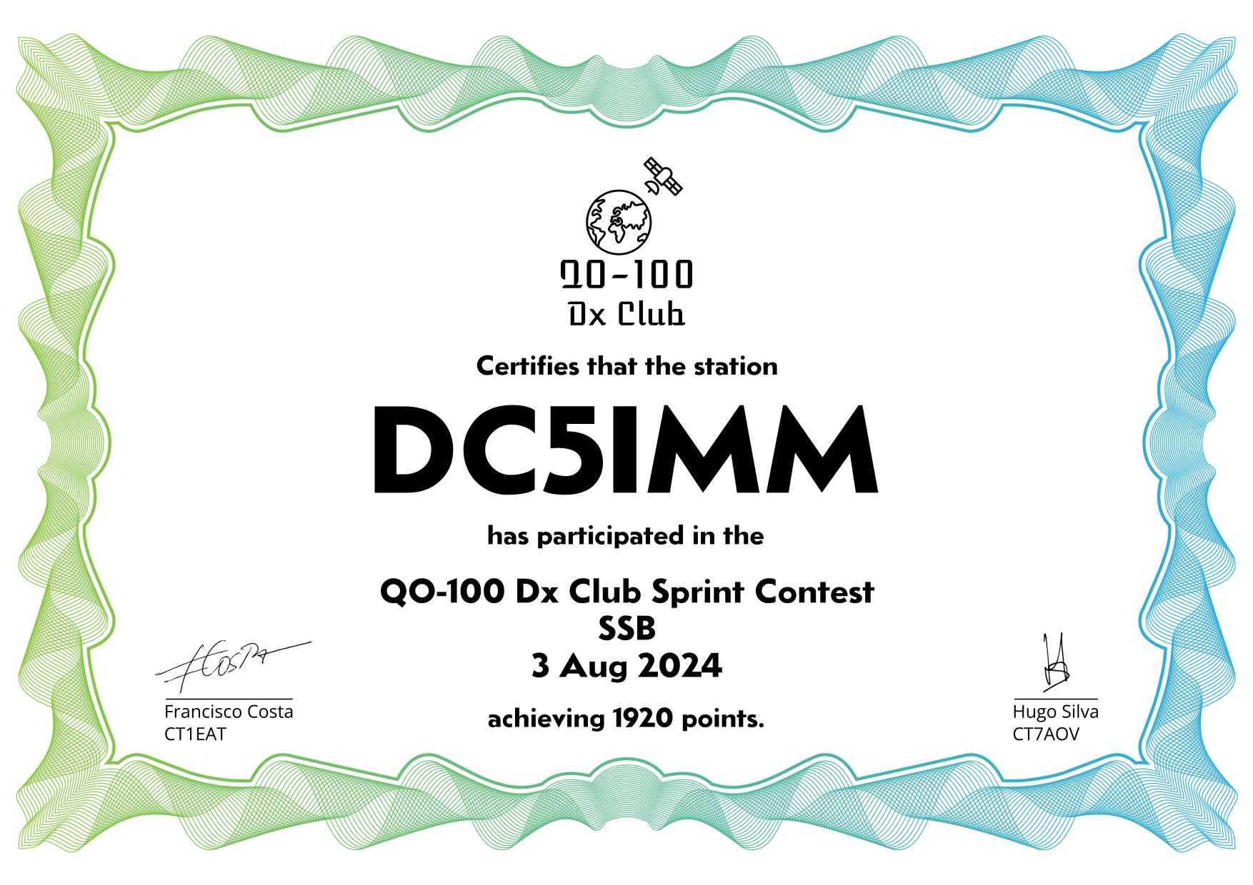 are currently QO-100 Dx Club members, but might have not been at the time of the Sprint Contest.