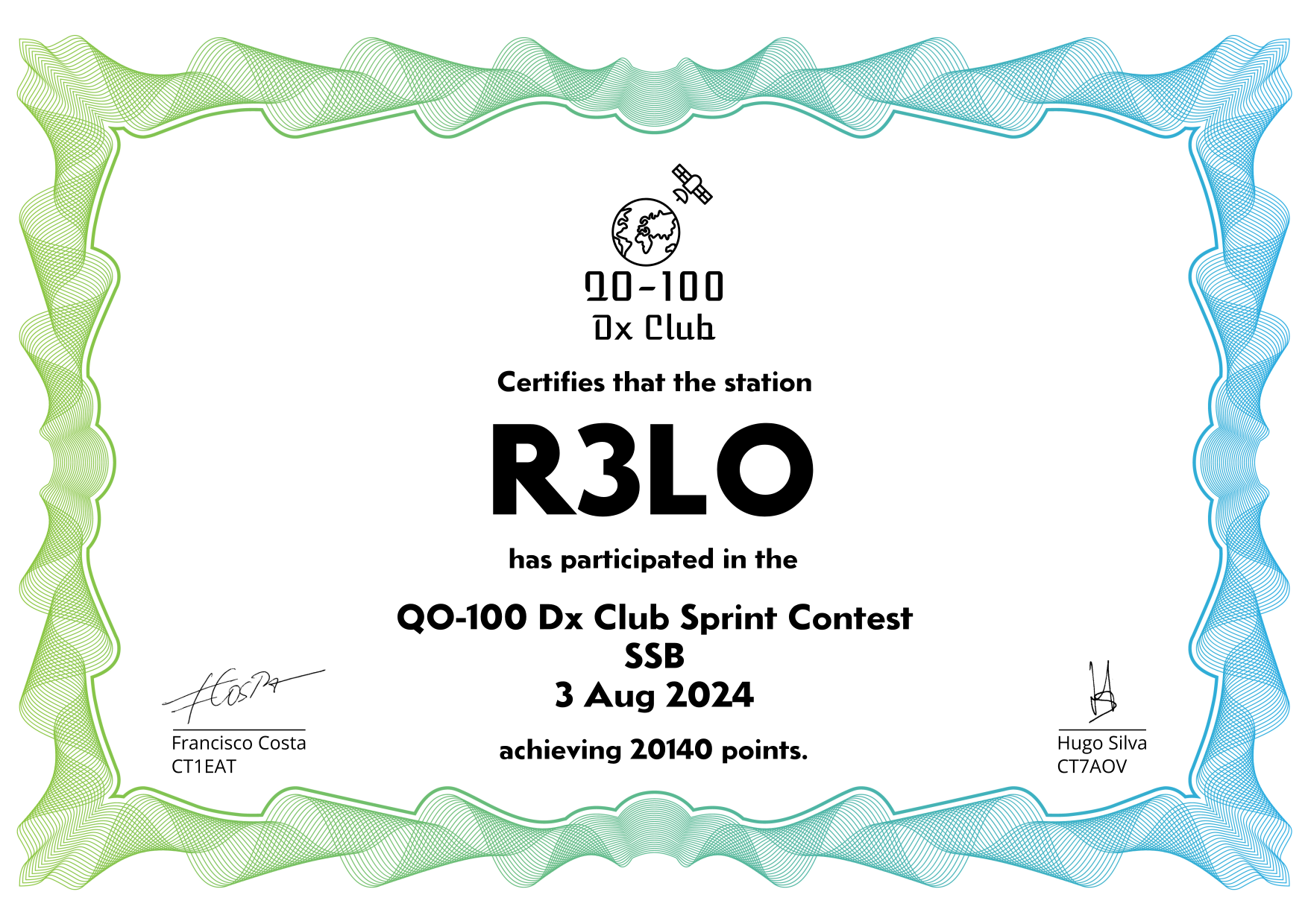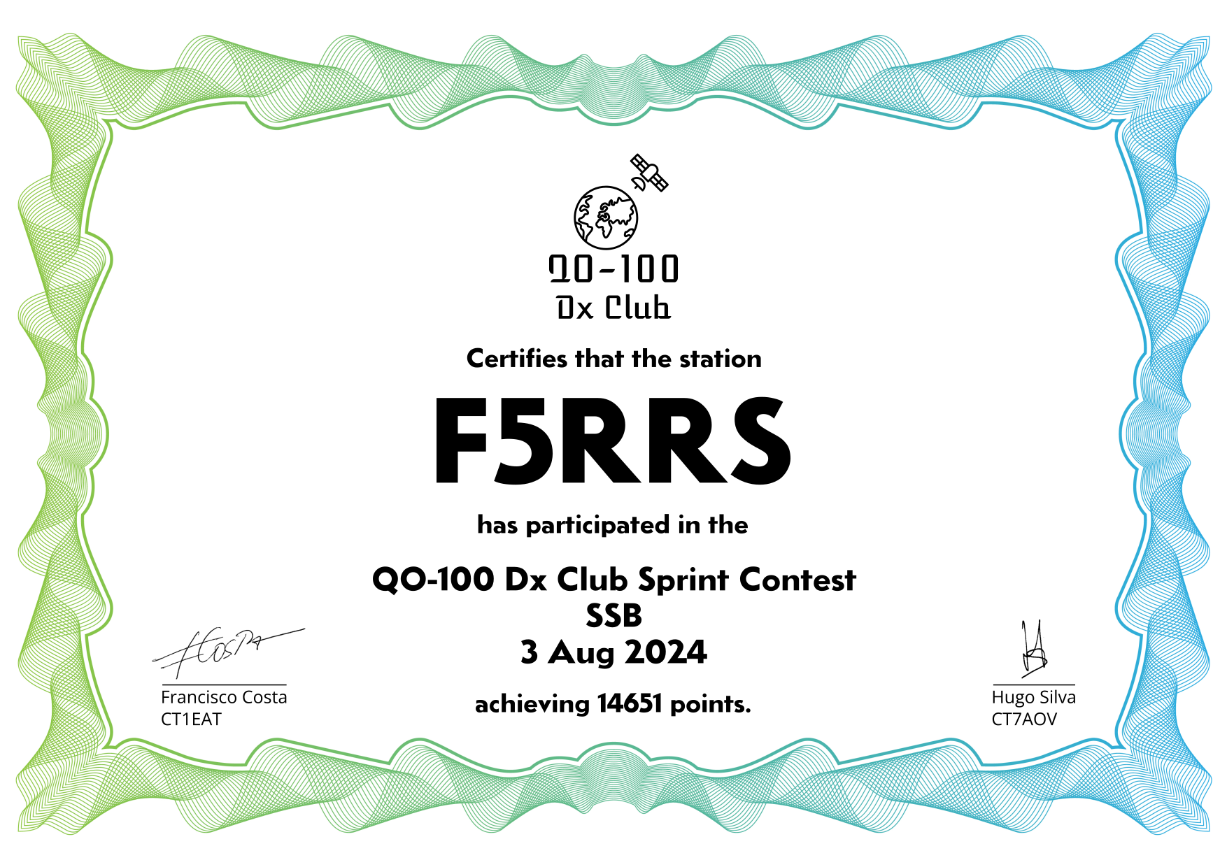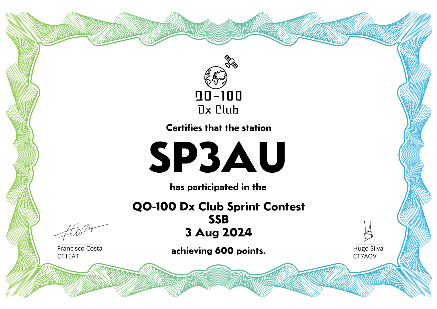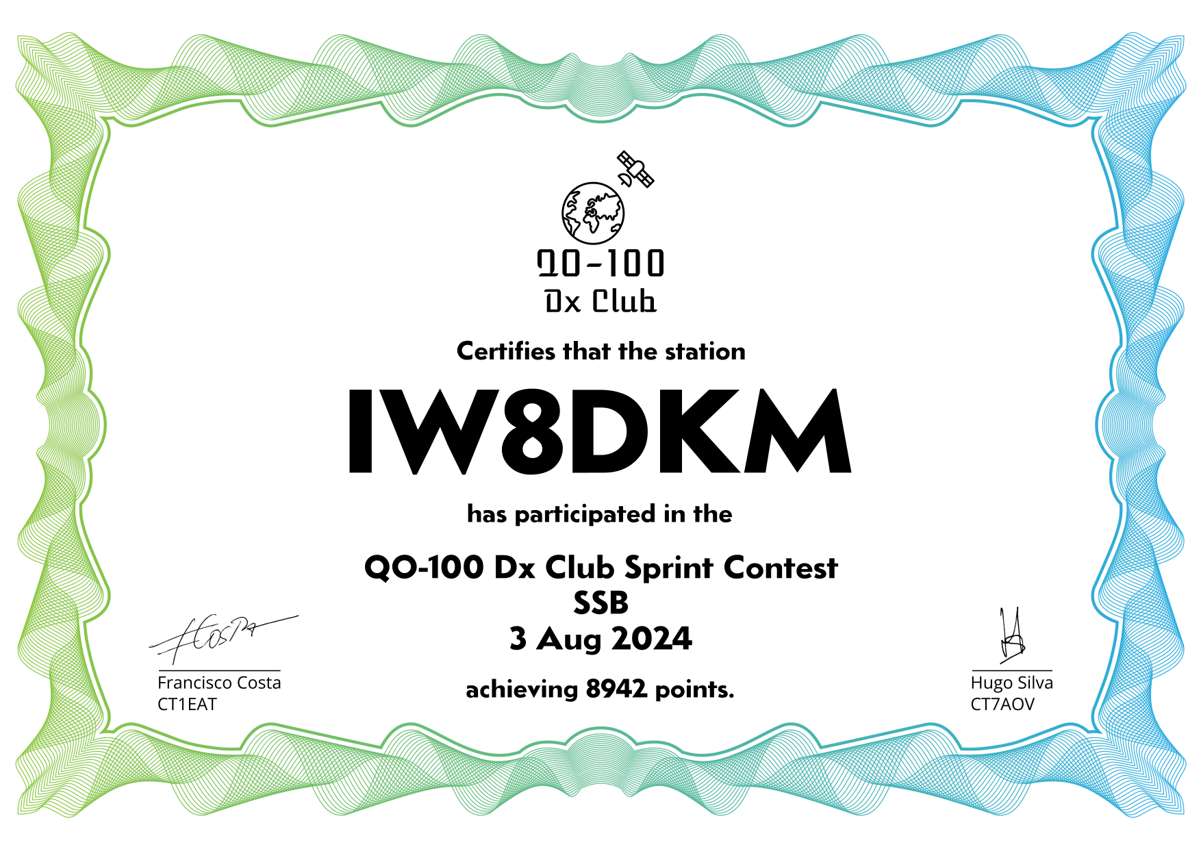 are currently QO-100 Dx Club members, but might have not been at the time of the Sprint Contest.