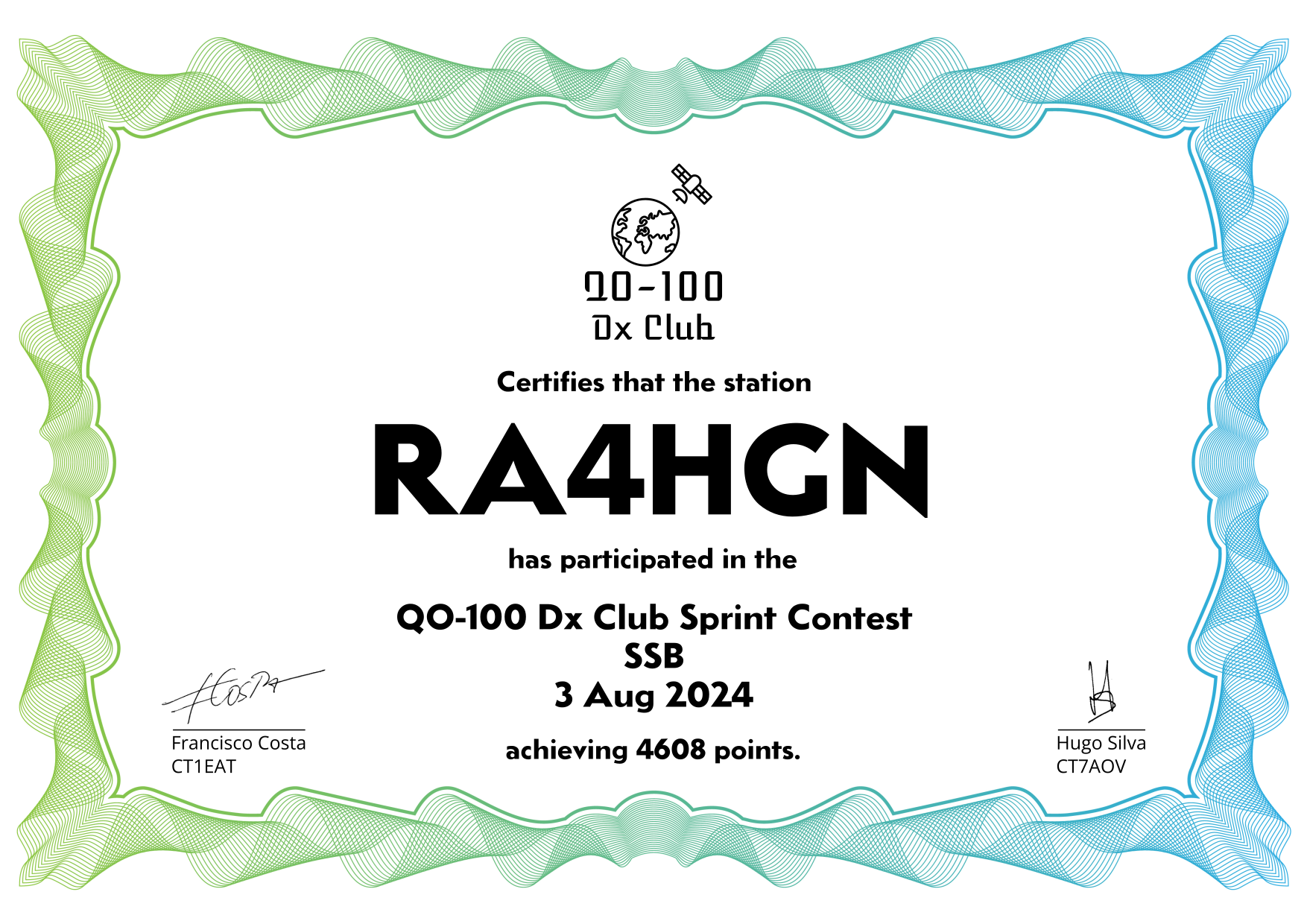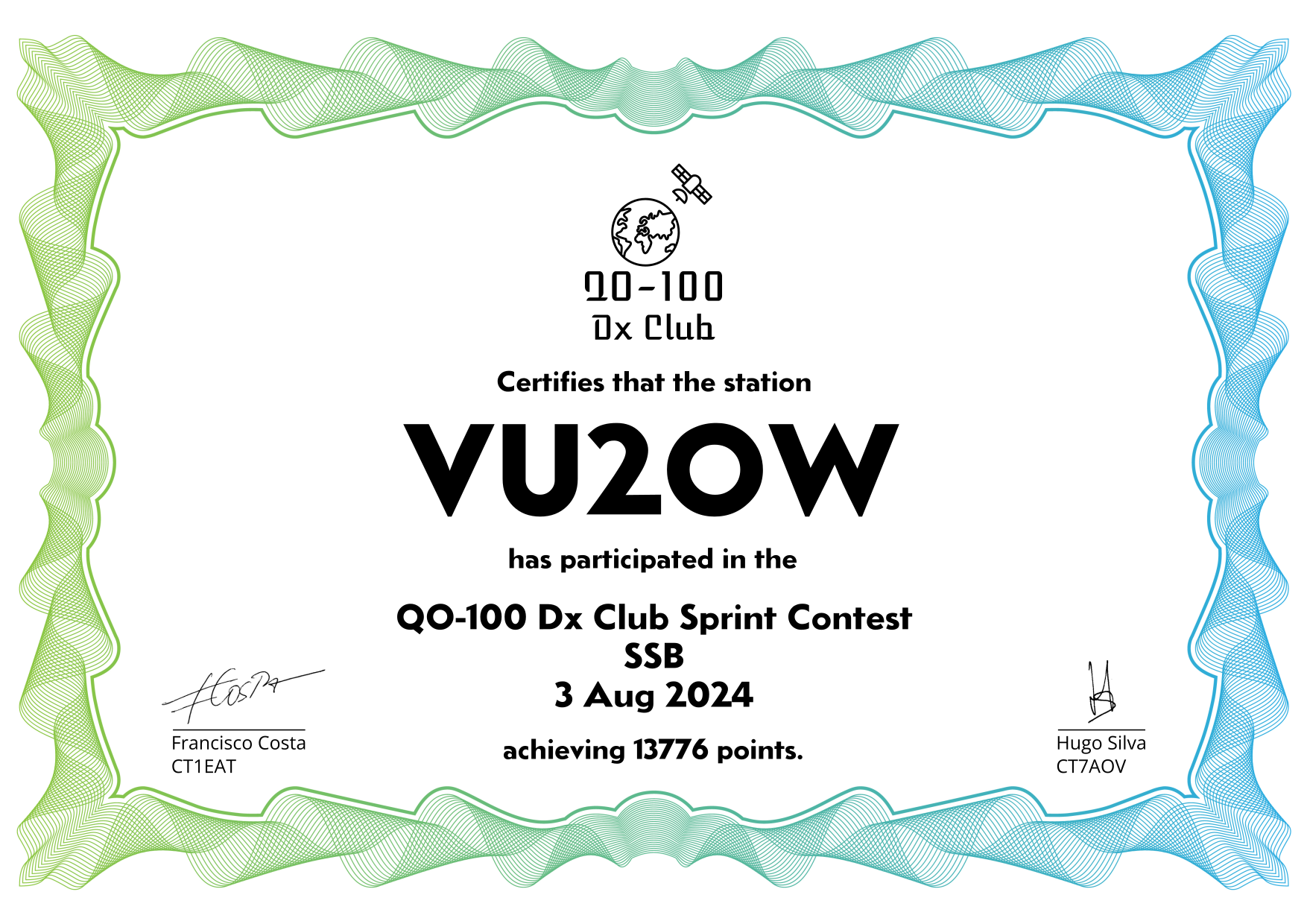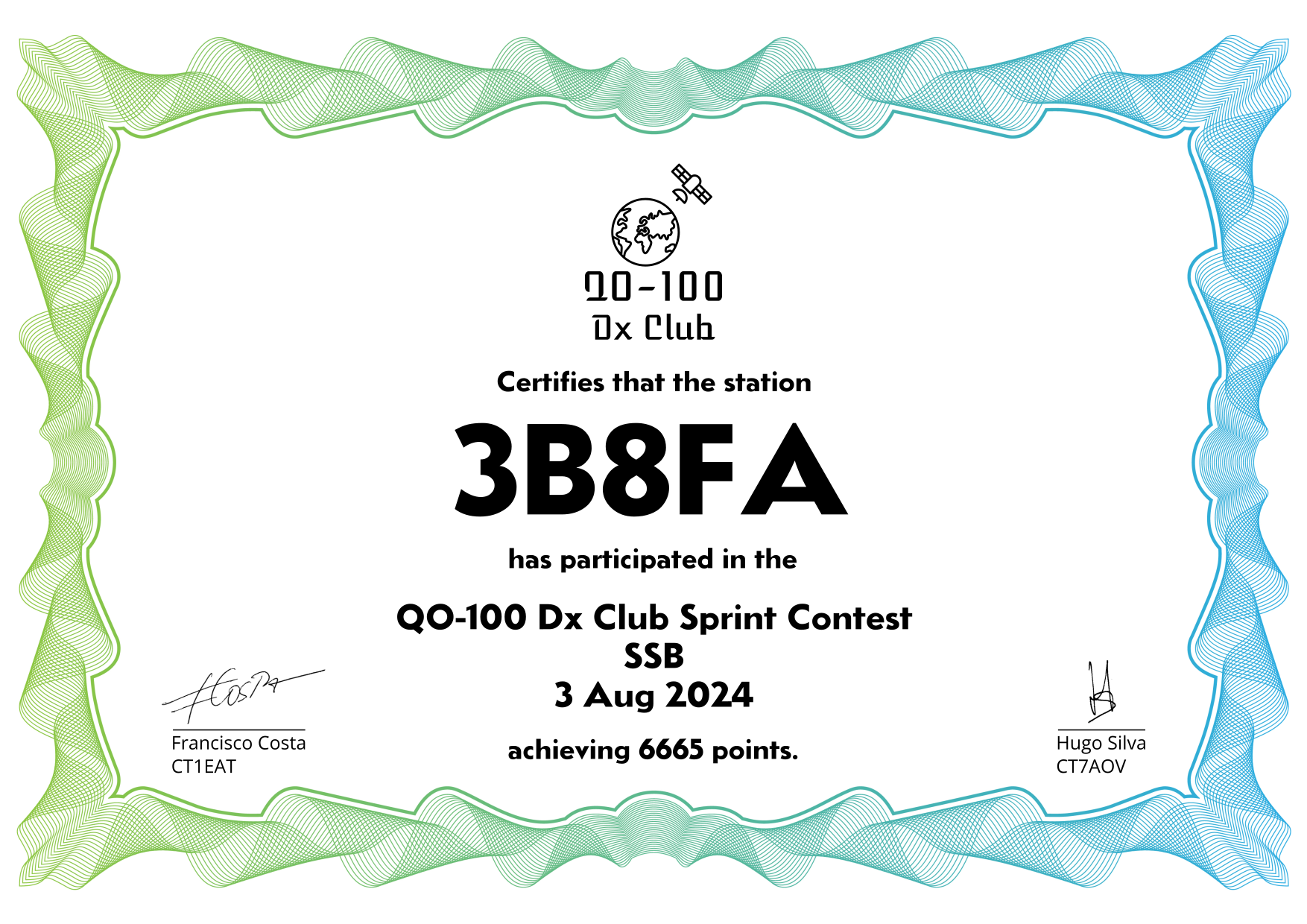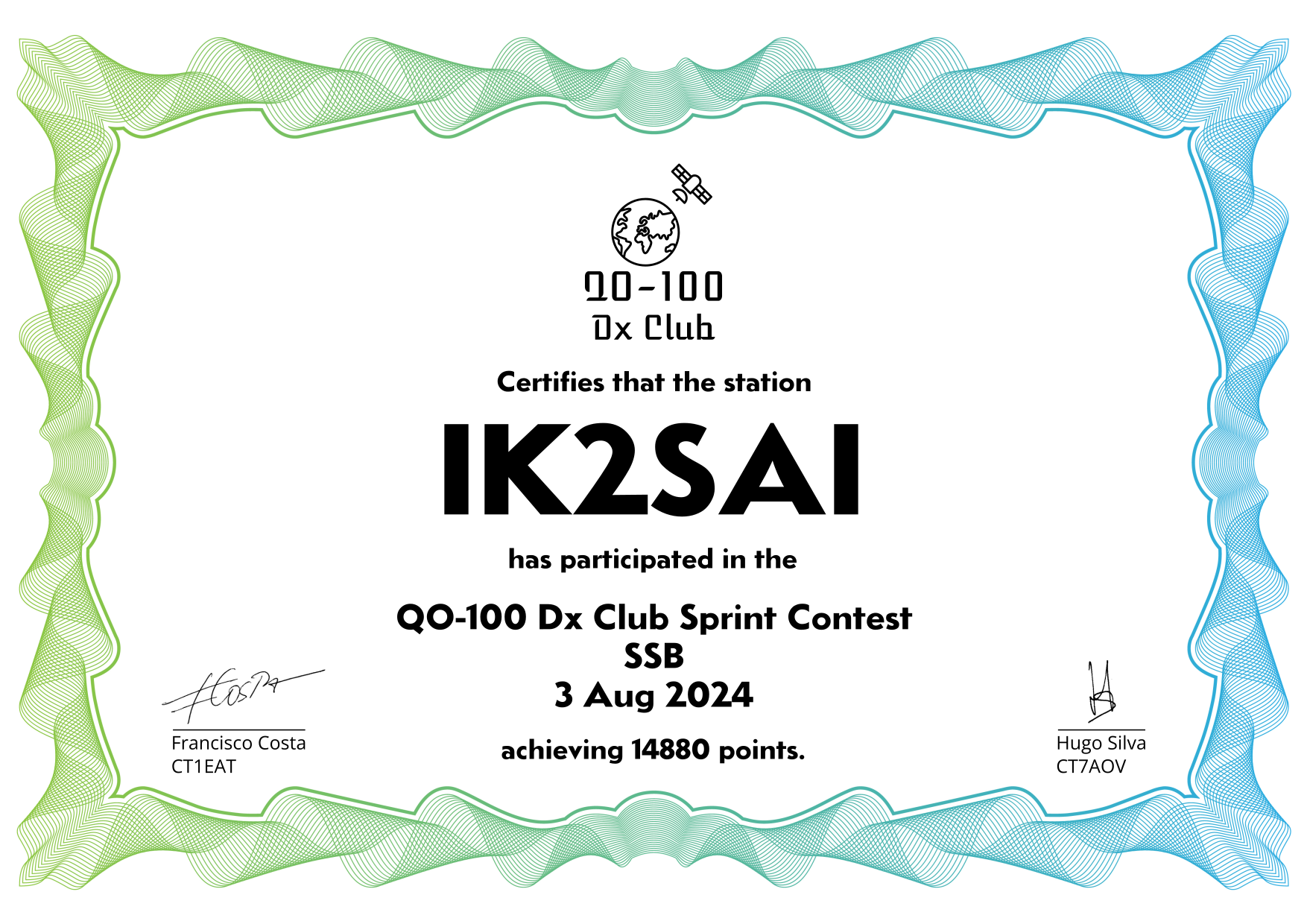are currently QO-100 Dx Club members, but might have not been at the time of the Sprint Contest.
