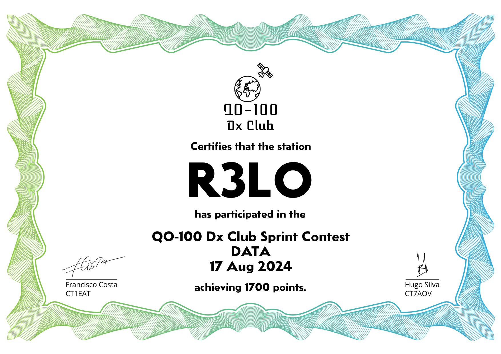 are currently QO-100 Dx Club members, but might have not been at the time of the Sprint Contest.