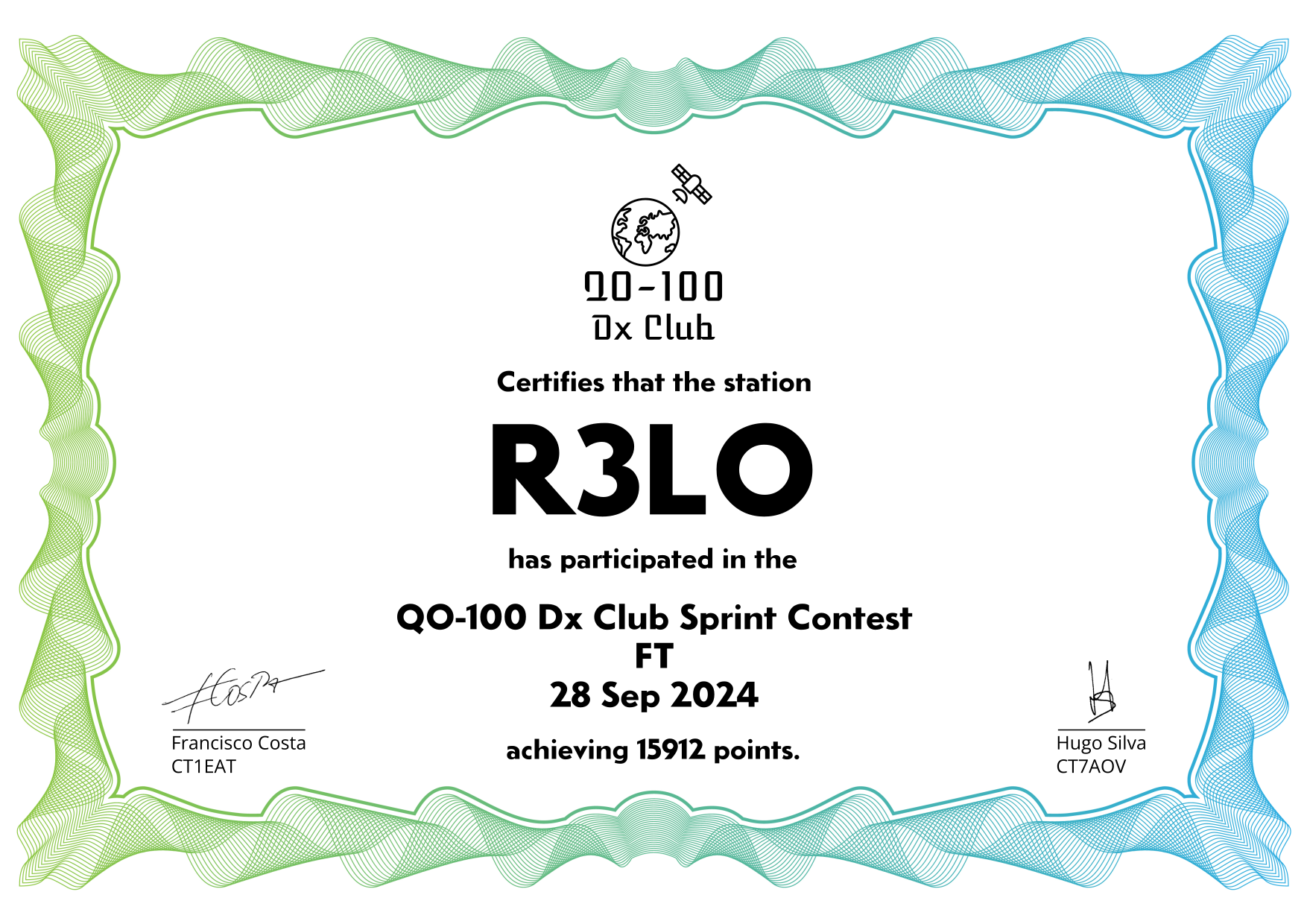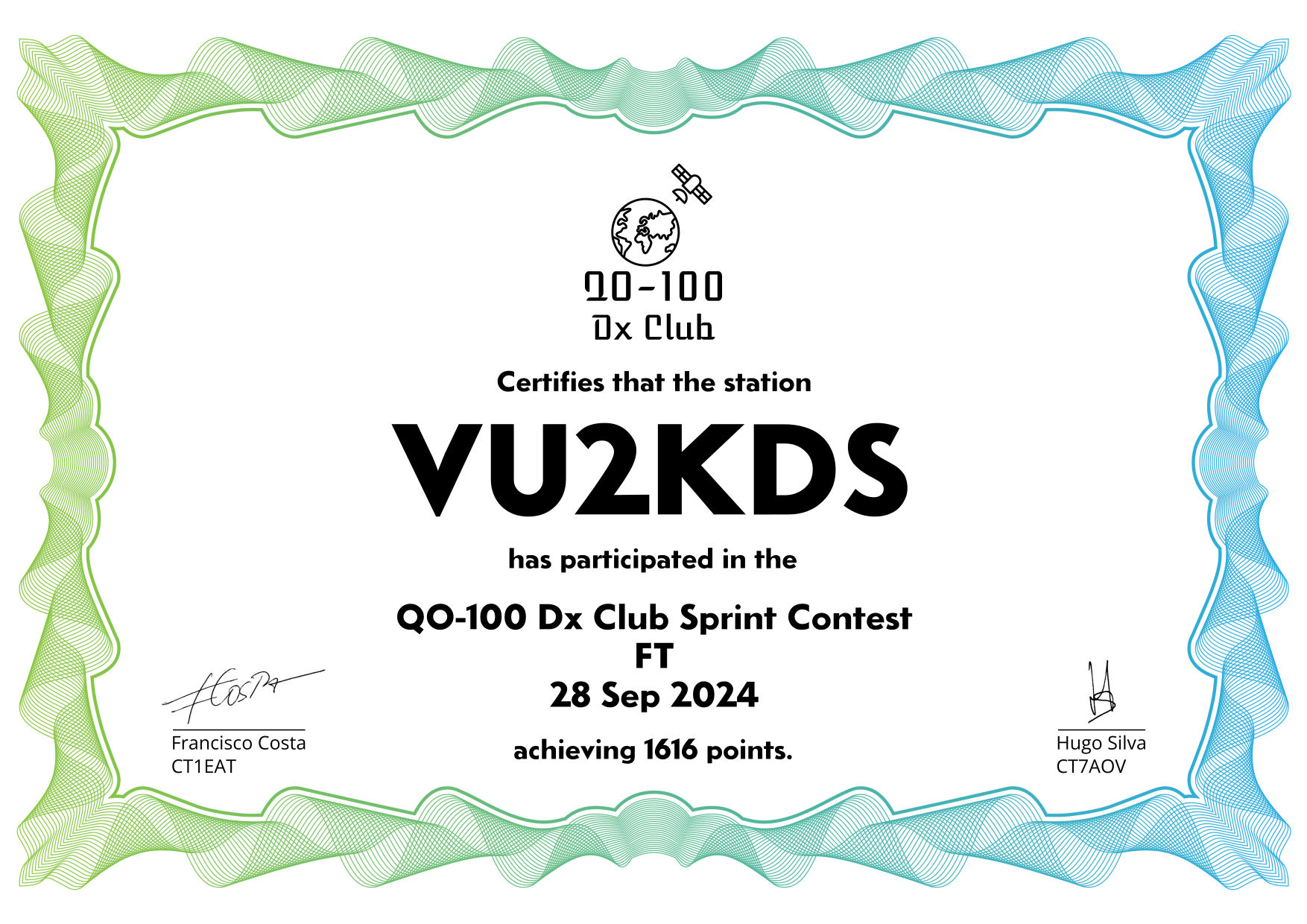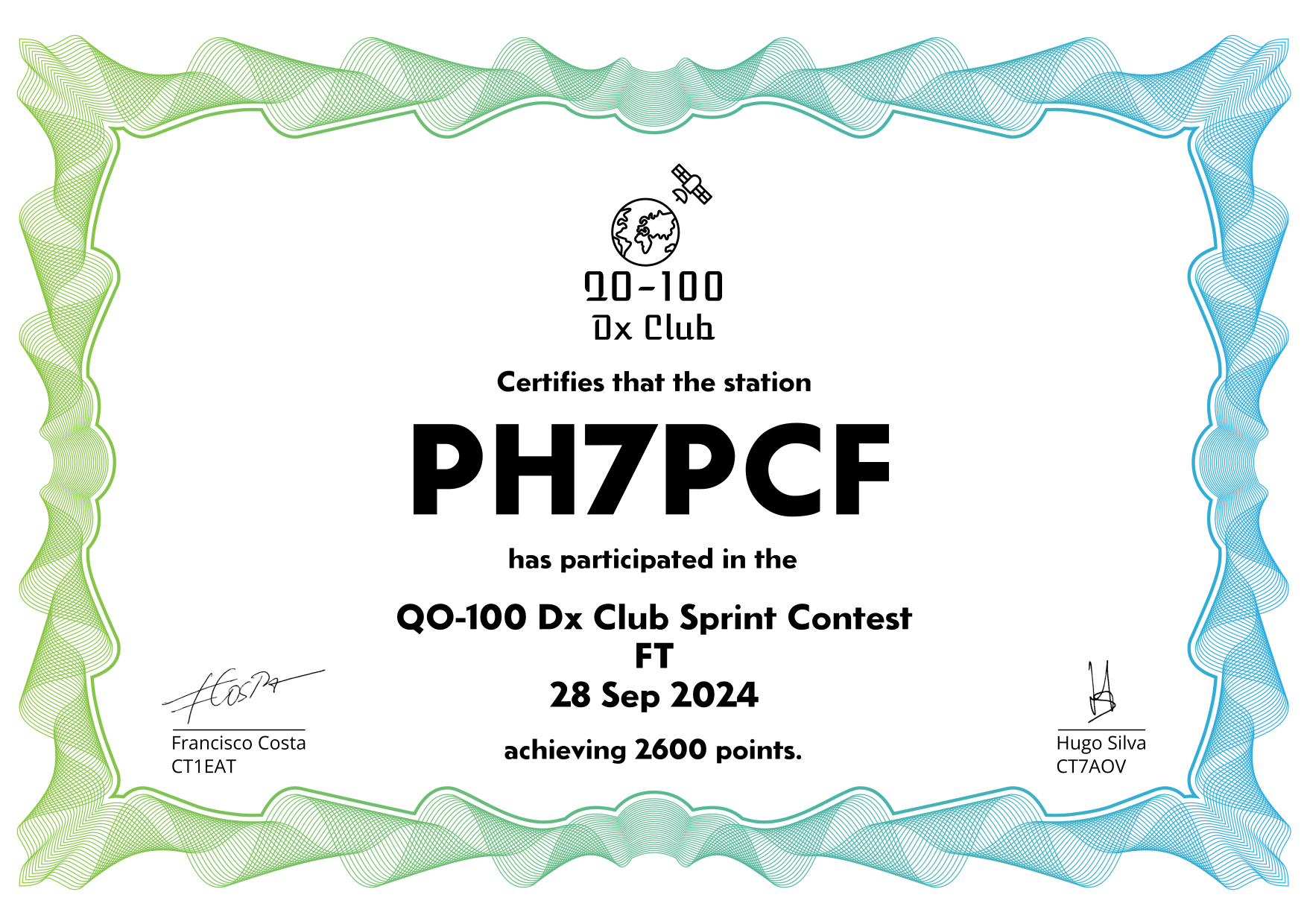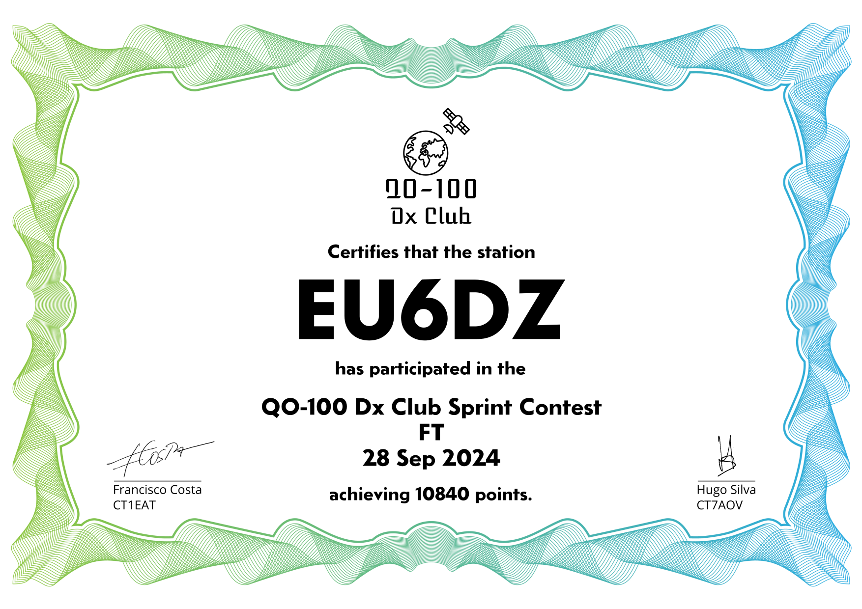 are currently QO-100 Dx Club members, but might have not been at the time of the Sprint Contest.