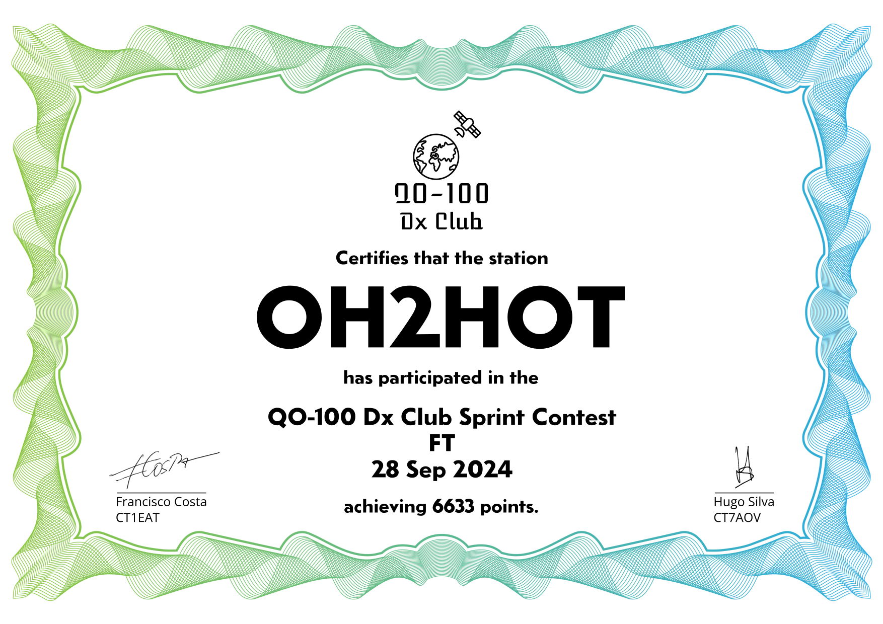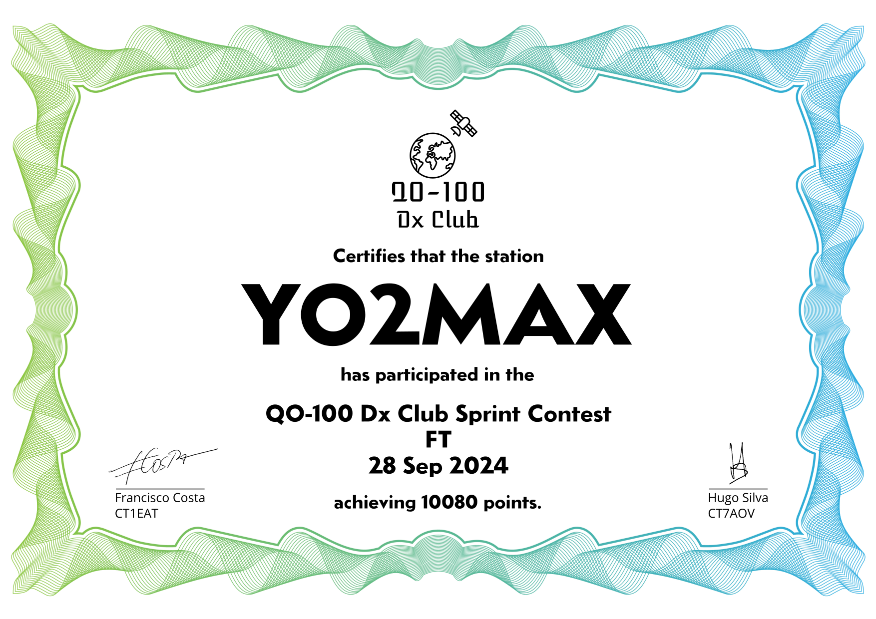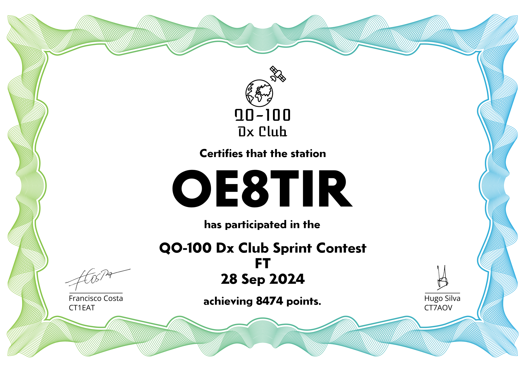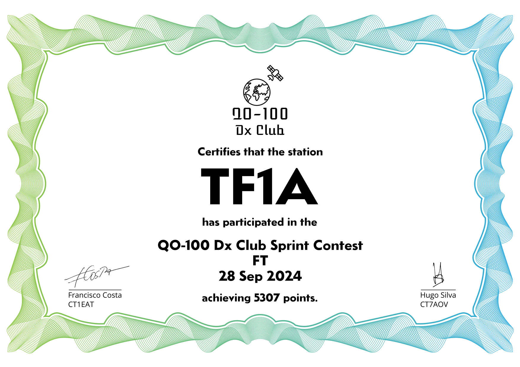 are currently QO-100 Dx Club members, but might have not been at the time of the Sprint Contest.
