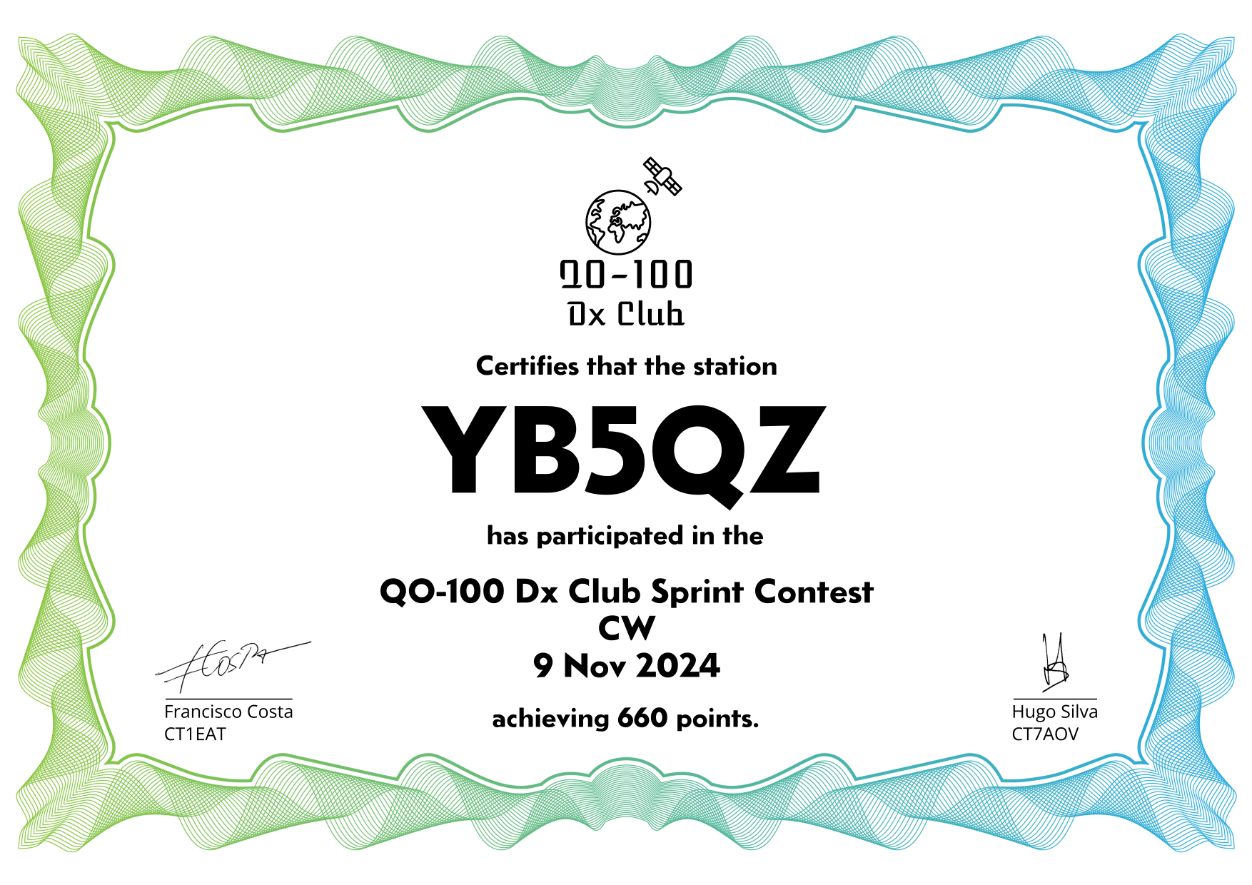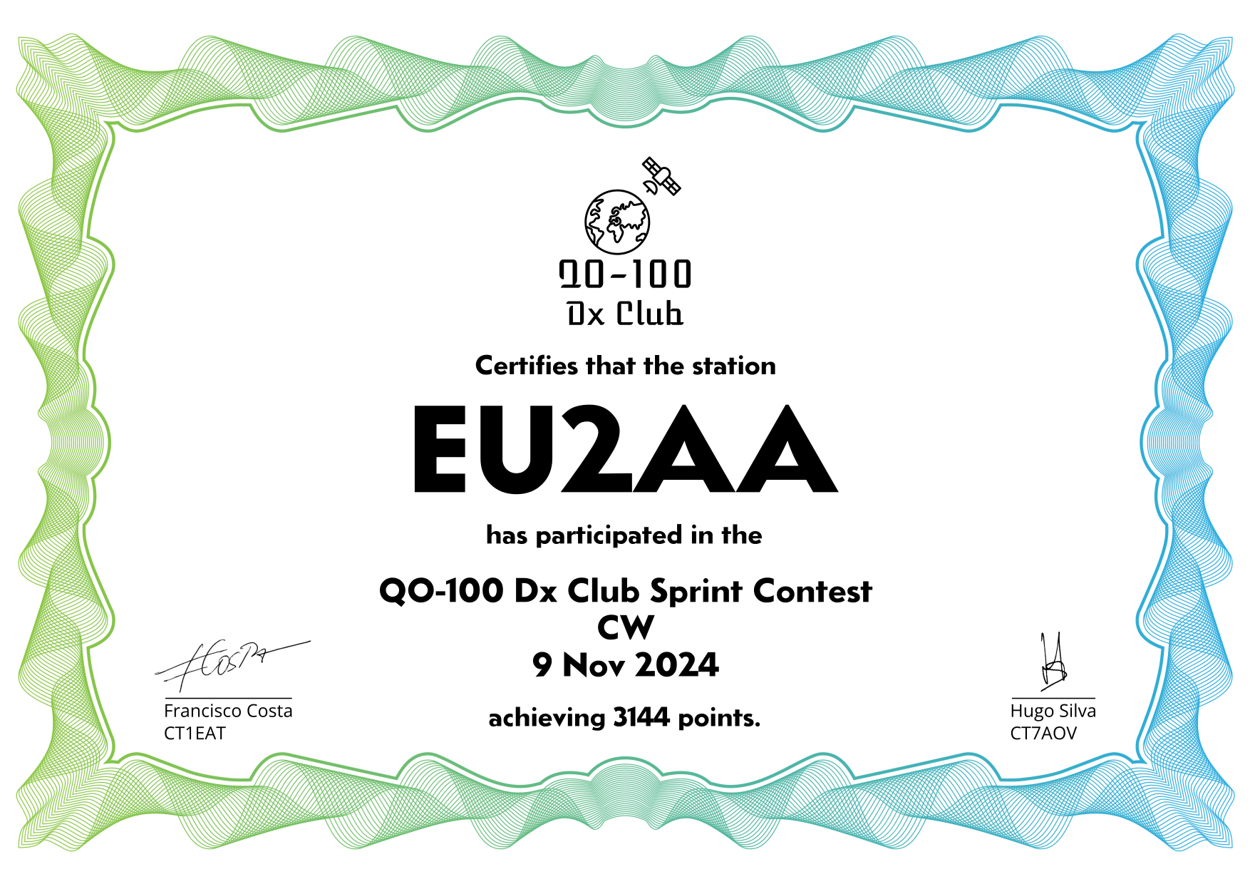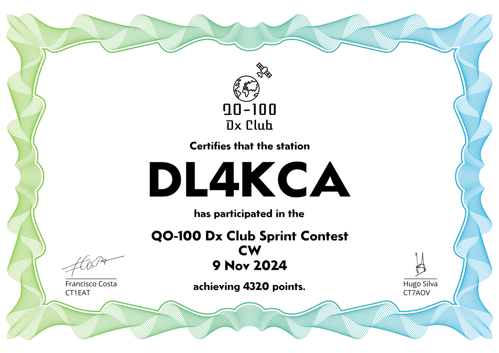 are currently QO-100 Dx Club members, but might have not been at the time of the Sprint Contest.