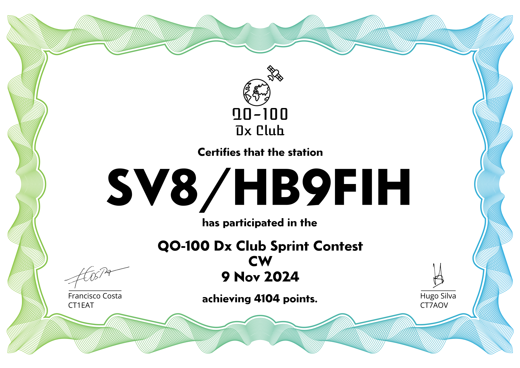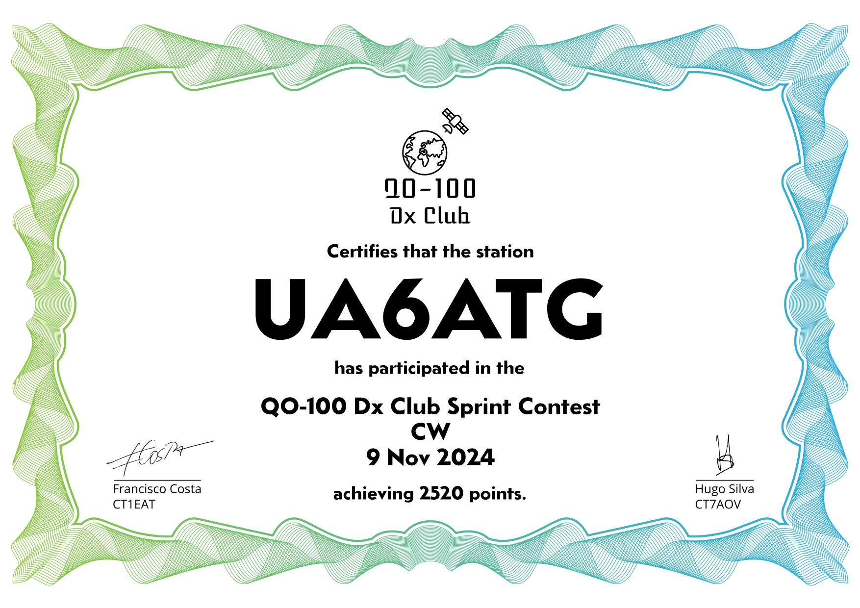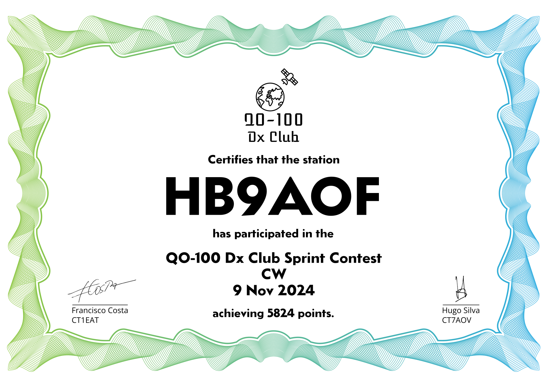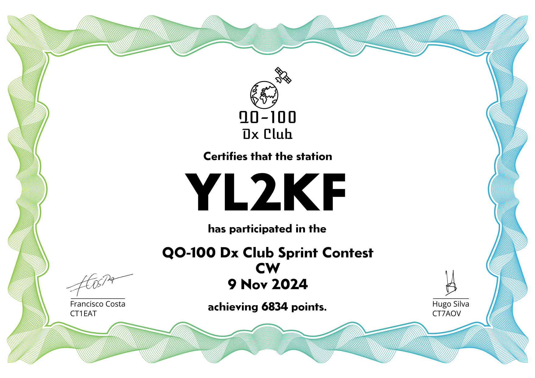 are currently QO-100 Dx Club members, but might have not been at the time of the Sprint Contest.
