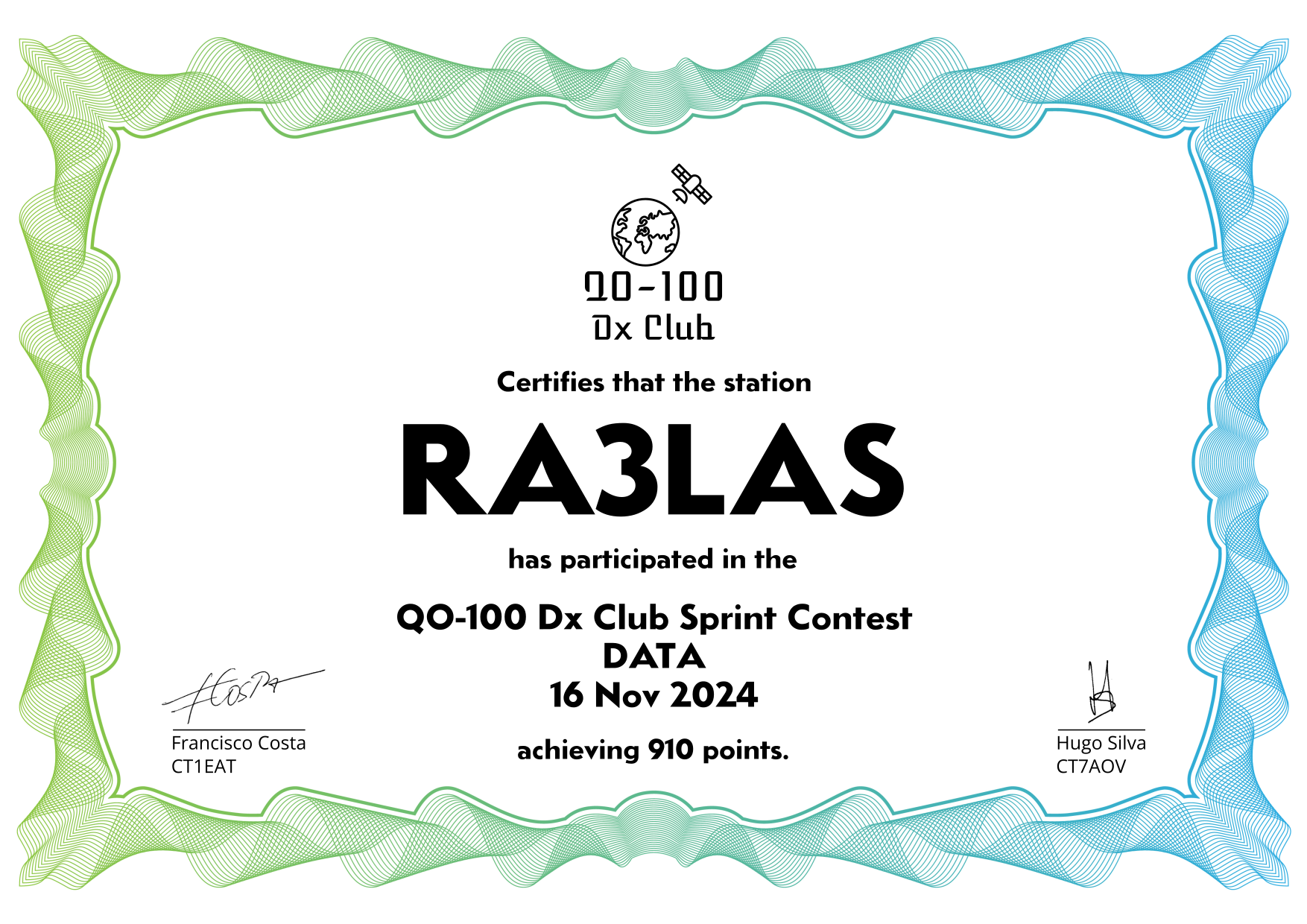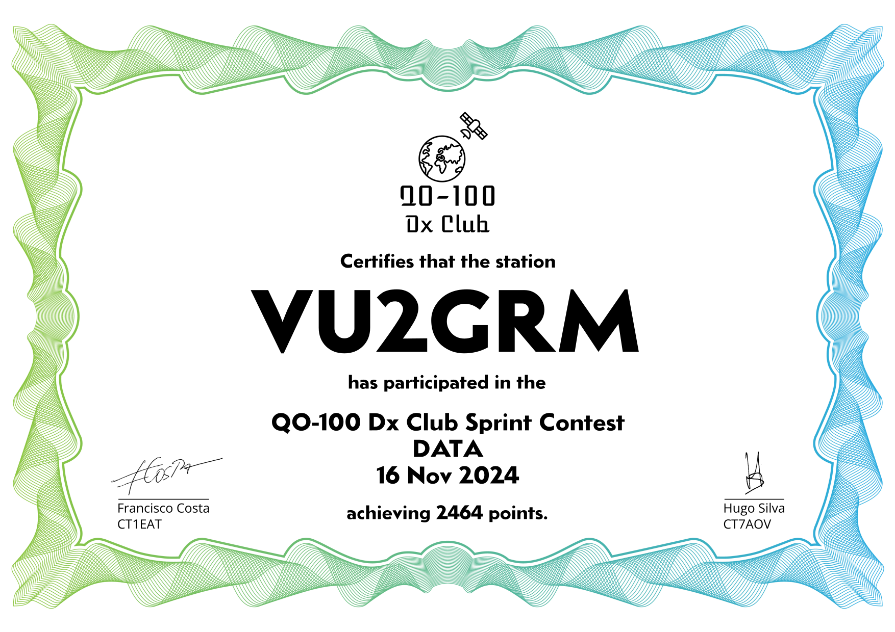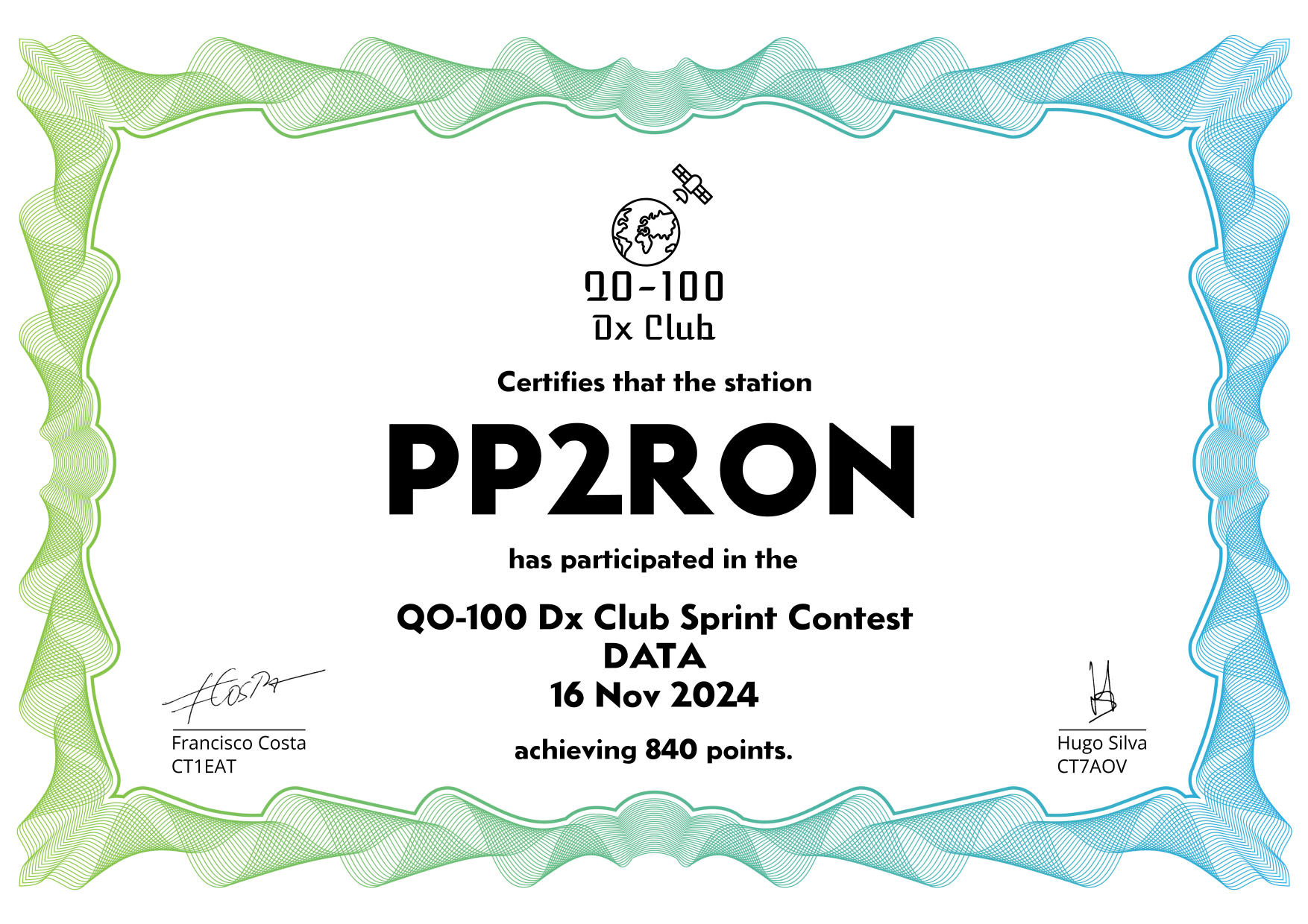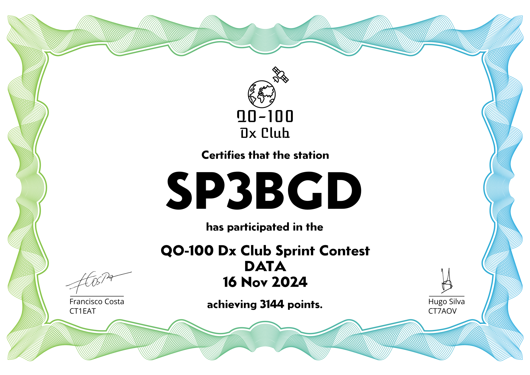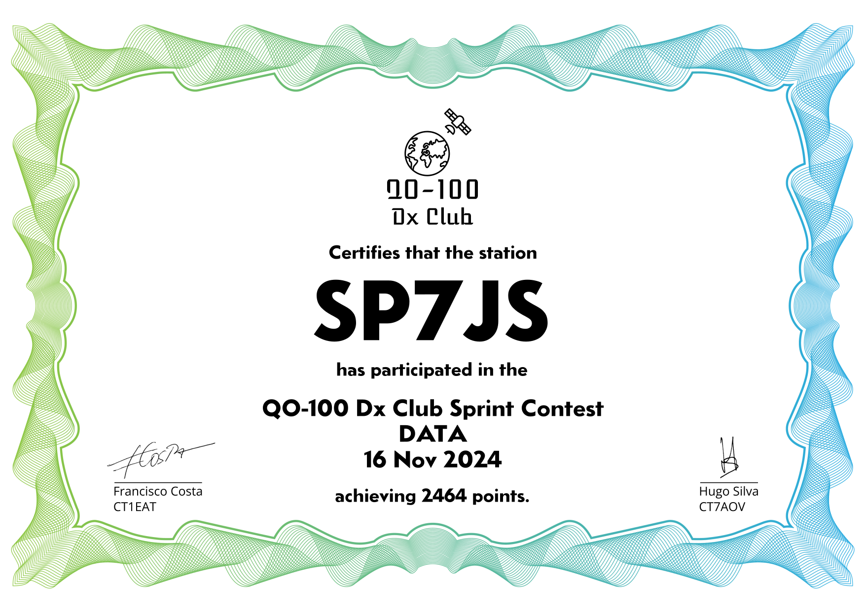are currently QO-100 Dx Club members, but might have not been at the time of the Sprint Contest.