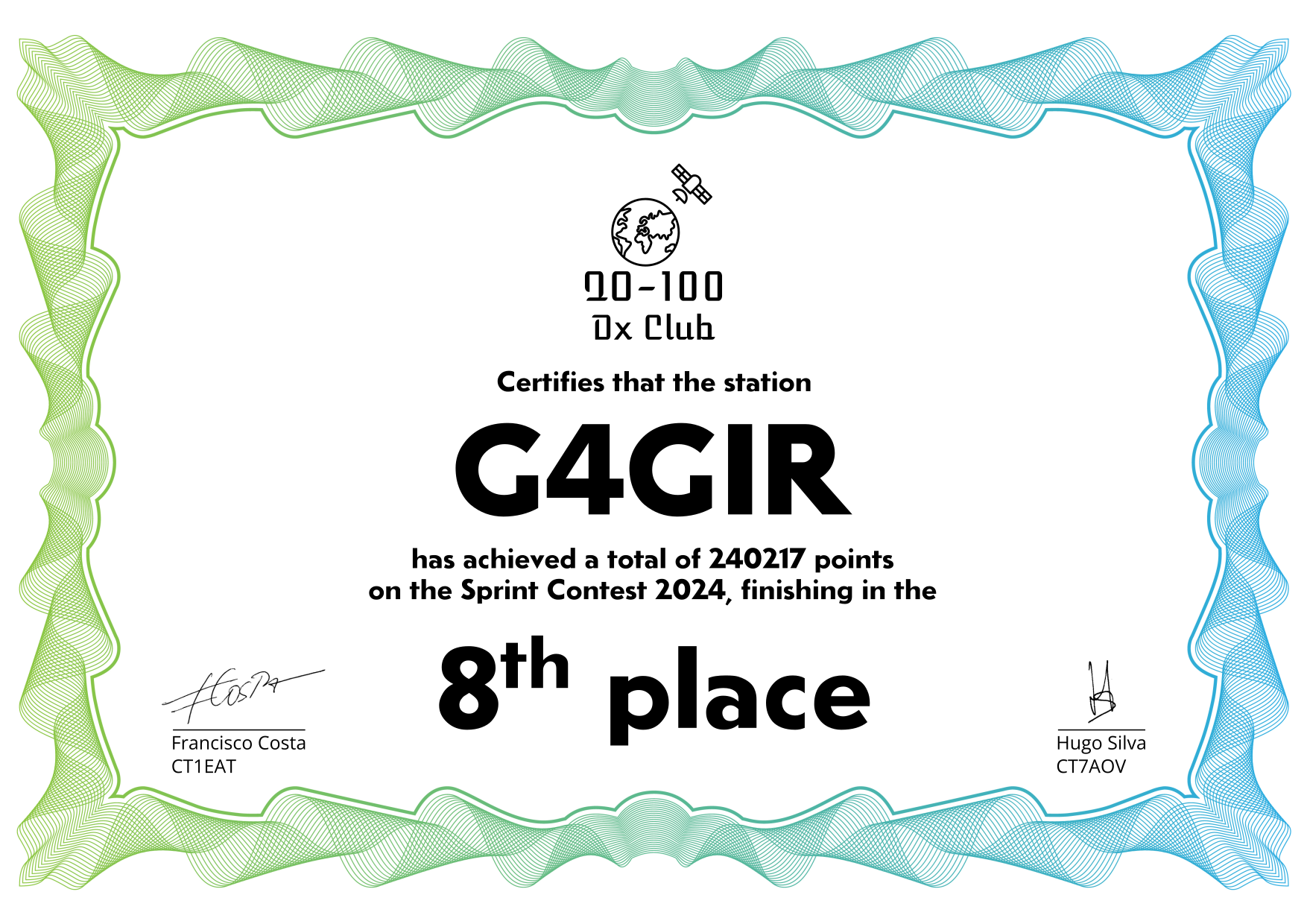 are currently QO-100 Dx Club members, but might have not been at the time of the Sprint Contest.