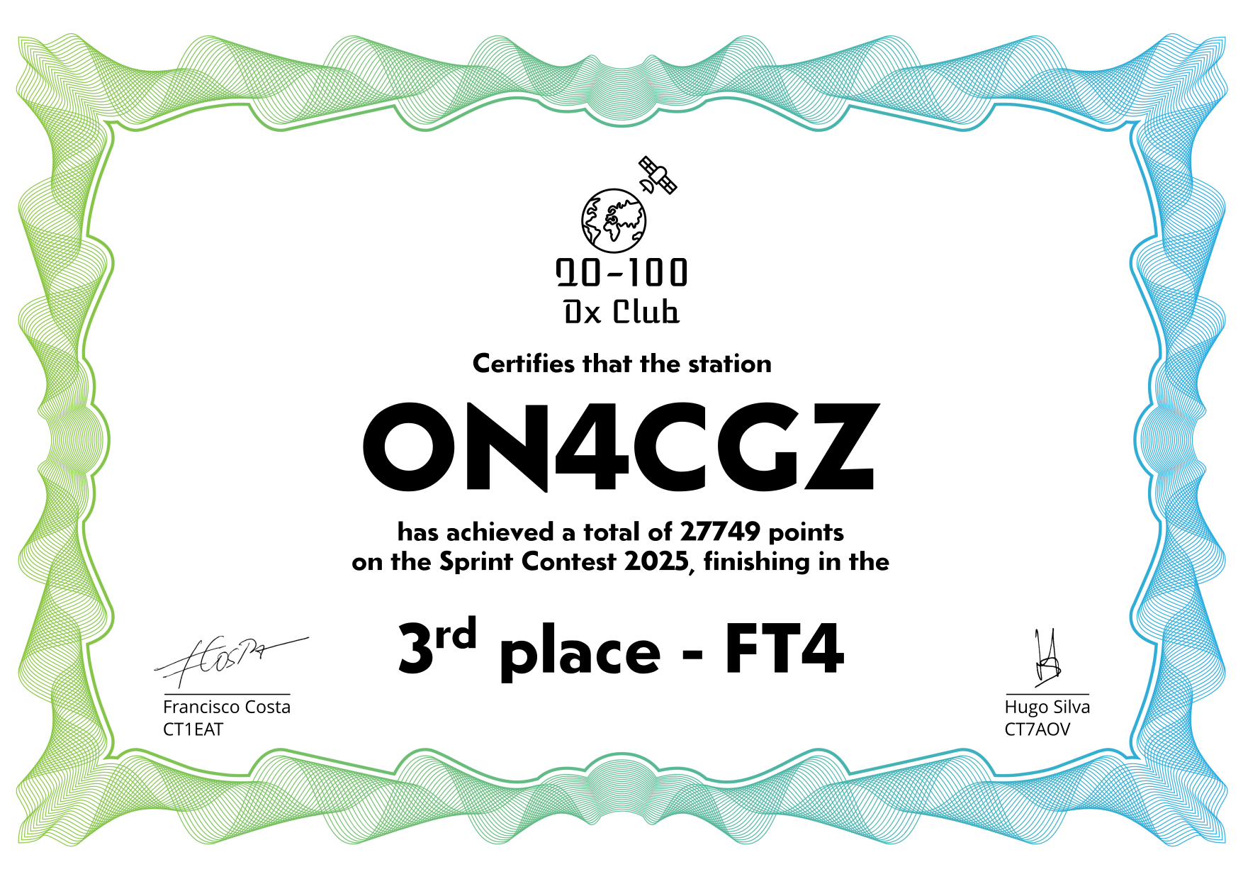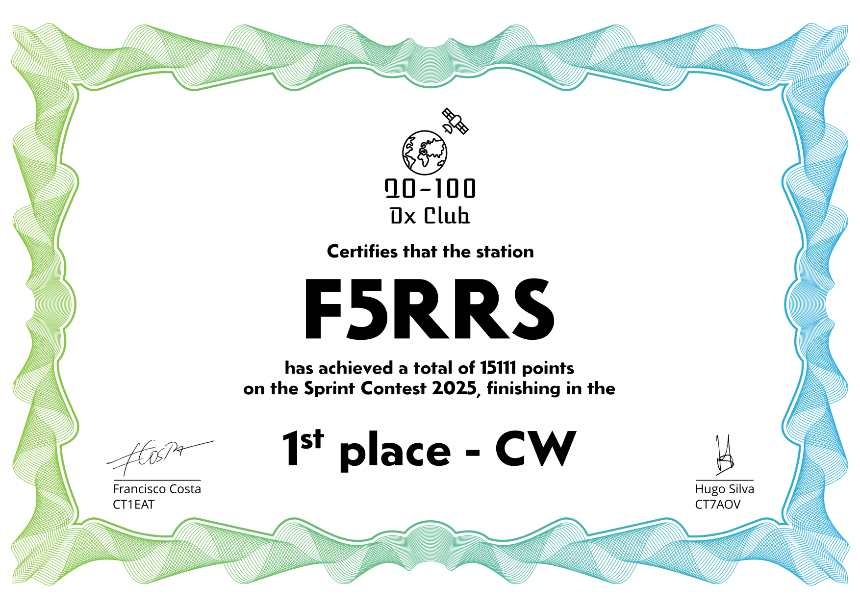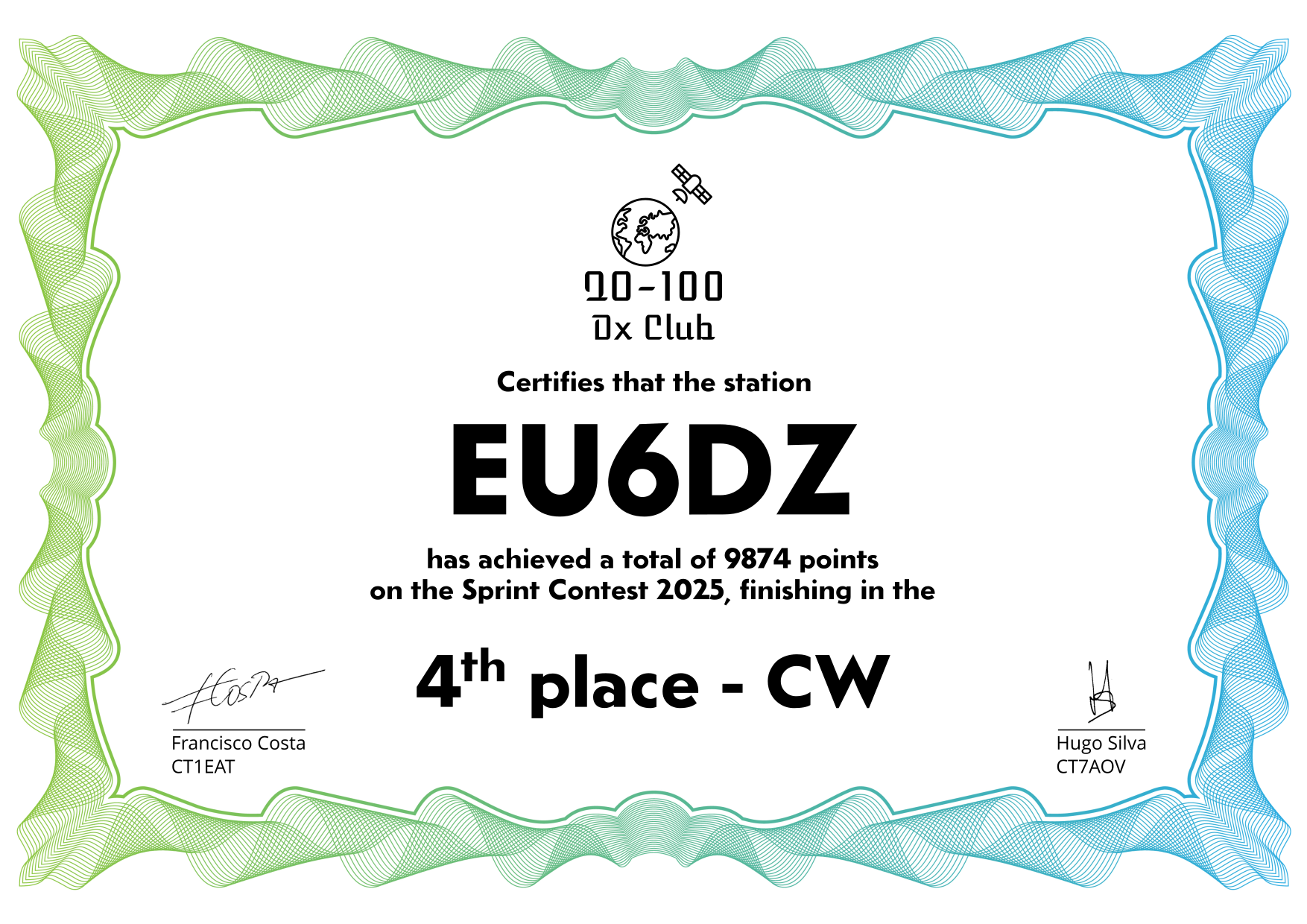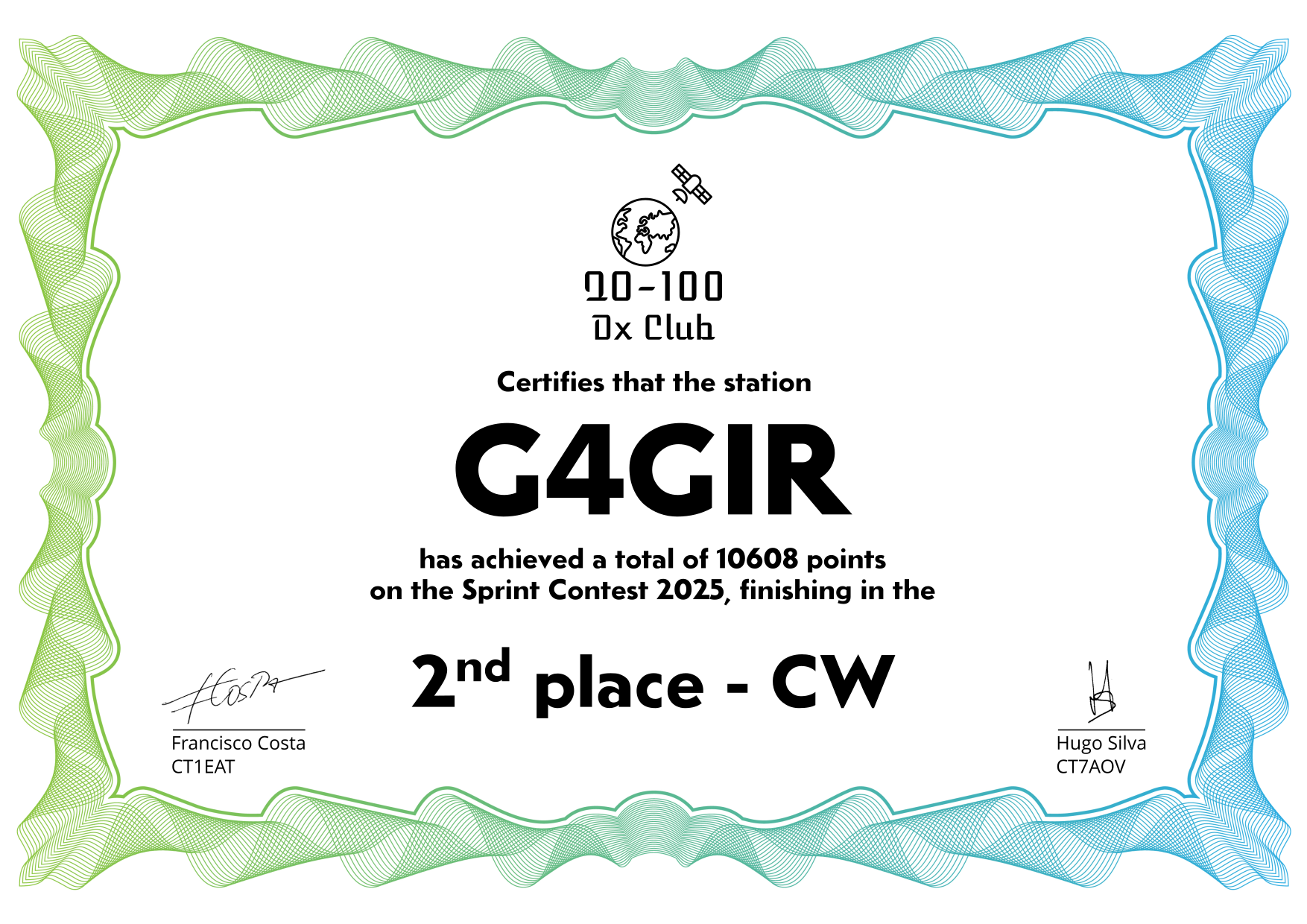 are currently QO-100 Dx Club members, but might have not been at the time of the Sprint Contest.